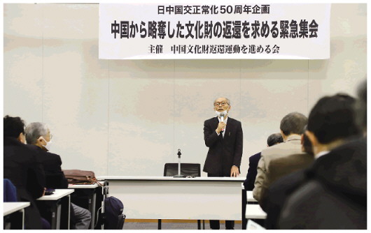 由日本有识之士组成的“中国文物返还运动推进会”20日在东京举行集会,要求日方返还战争期间从中国掠夺的文物。