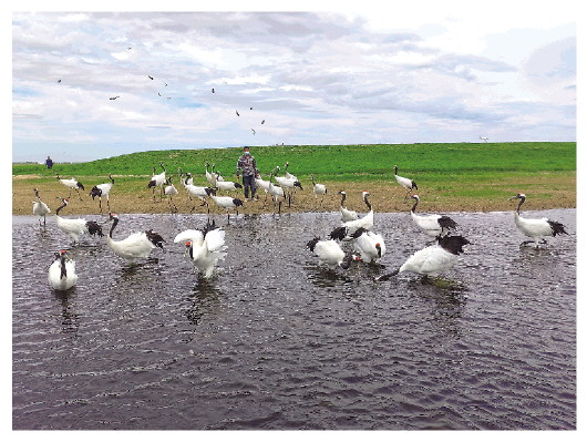 经过40多年的实践,扎龙湿地逐渐摸索采用“放飞逃逸”和“半散养”方式开展丹顶鹤野化工作。目前,扎龙湿地已成功监测野化丹顶鹤迁徙数据20条,年野化数量10余只,累计有350余只散养鹤后代补充到野生丹顶鹤种群中。