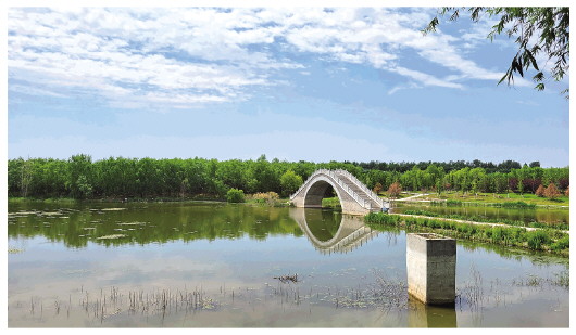 依托北大沙河,长清区建设了城市中央公园,打造出一道集行洪排涝、人文观光、亲水休闲、自然生态等功能于一体的城市河道观光带,近百米宽的河面碧波荡漾,河口湿地公园成为市民健身、游玩的好去处。