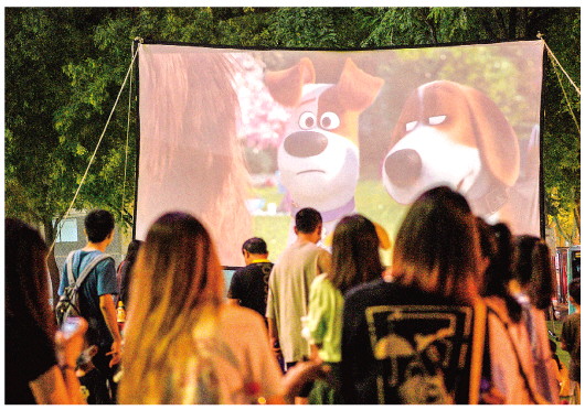 市民在西影“电影圈子”内观看露天电影(9月11日摄)。西部电影集团(简称西影),是新中国六大电影制片基地之一,它的前身为成立于1958年的西安电影制片厂,为中国电影捧回多个国际奖项。2016年起,西影拆除厂区围墙,围绕“电影生活化、生活电影化”建立电影博物馆、胶片工业馆、艺术档案馆、商业综合体等多个相关业态聚合的“电影圈子”,让电影艺术融入市民生活,将国家级工业遗产项目变身极具经济新活力的电影产业集聚区。                    新华社记者刘潇摄