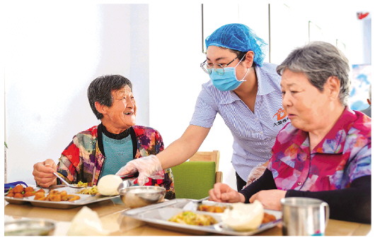 ▲9月25日,在惠民县何坊街道“孝善食堂”,工作人员为老人添加馒头。山东惠民县从“一顿热乎饭”入手,在全县推行互助型“孝善食堂”居家养老项目,通过经济共担、积分激励、互助养老的方式,既解决老人就餐难问题,又在乡村引领道德风尚。 新华社记者郭绪雷摄