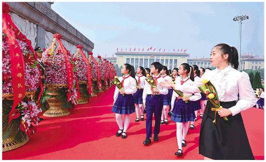 9月30日,烈士纪念日向人民英雄敬献花篮仪式在北京天安门广场隆重举行。