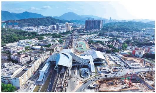 这是10月25日拍摄的深圳地铁大运枢纽(无人机照片)。10月28日,深圳地铁14号线、11号线福岗区间正式开通,沿线的岗厦北、大运、黄木岗三个枢纽同时开门迎客。新线的开通使深圳城市轨道交通线网规模达到14条,运营里程483公里。 新华社发(李小勇摄)