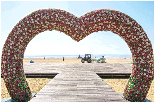 近日,旅游胜地河北省秦皇岛市各浴场的工人开始对浴场的沙滩进行整理,精筛细沙,检修旅游设备,准备迎接八方来客。
