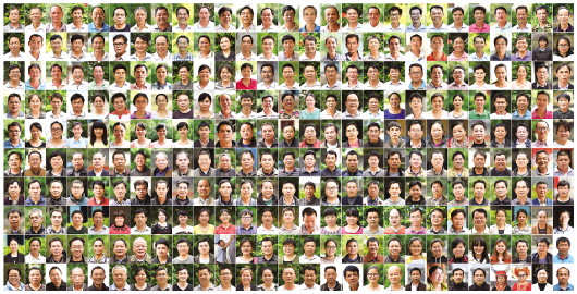 ▲这是2012年至今拍摄的广西20个县130多所大山学校270名老师的肖像(拼版照片)。