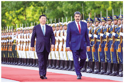 习近平指出,中国和委内瑞拉是相互信赖的好朋友、共同发展的好伙伴。近年来,中委两国都走过了极不平凡的发展历程,双方在国际风云变幻中相互支持,结下了“铁杆”情谊。中方始终从战略高度和长远角度看待发展同委内瑞拉关系,坚定支持委方维护国家主权、民族尊严、社会稳定的努力,坚定支持委方反对外部干涉的正义事业。中委建立全天候战略伙伴关系,符合两国人民共同期待,顺应历史发展大势。双方要推动中委战略合作结出更多硕果,给两国人民带来更多福祉,也为世界和平和发展注入更多正能量。