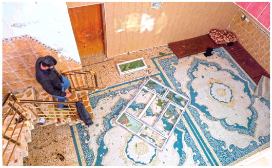▲一月十六日,在伊拉克北部库尔德自治区埃尔比勒,一名男子在伊朗导弹袭击后检查房屋。 新华社发