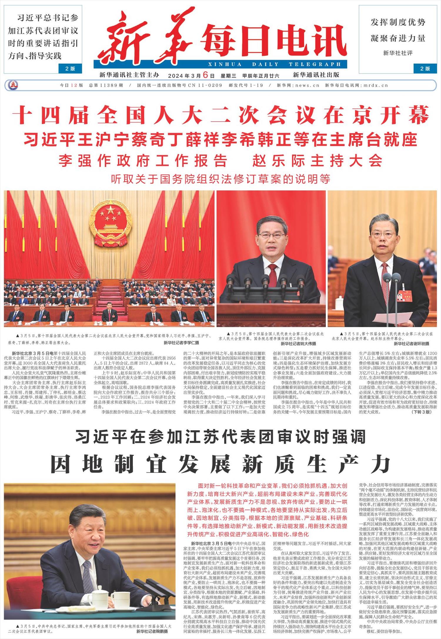 | ( 2024-03-06 ) 稿件来源:新华每日电讯 要闻 |