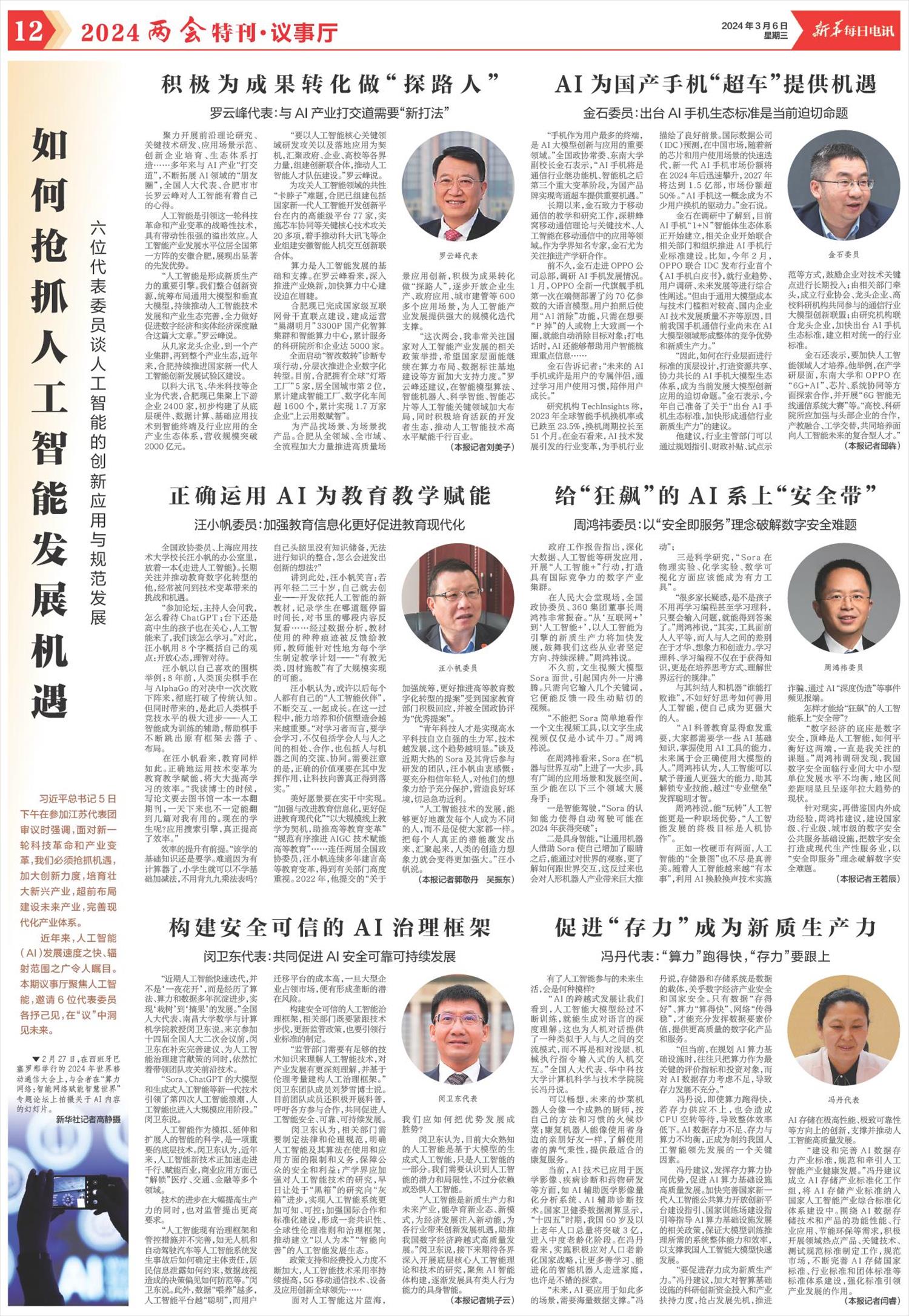 近年来,人工智能(AI)发展速度之快、辐射范围之广令人瞩目。本期议事厅聚焦人工智能,邀请6位代表委员各抒己见,在“议”中洞见未来。