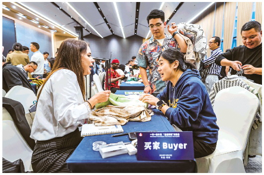 近日,2024“一带一路”纺织行业协会“走进柯桥”对接会在绍兴国际会展中心举行。来自近40个国家和地区的驻华代表和行业协会代表齐聚一堂,围绕主题各抒己见,介绍各国纺织产业发展情况,探讨当前产业发展遇到的机遇挑战和应对措施,分享各自在推动纺织产业高端化、智能化、绿色化、融合化发展中的有益尝试和经验做法,为持续深化合作、共同推动全球纺织业高质量发展提供了新路径、新方案。同时,外商企业代表还和柯桥本地纺织企业进行了“一对一”的交流对接。 (姚加峰摄)