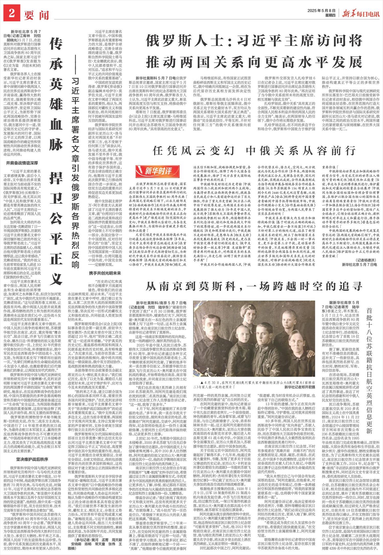| ( 2025-05-08 ) 稿件来源:新华每日电讯 要闻 |