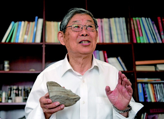 ▲大庆“新铁人”王启民手拿含油岩石样本介绍情况(6月28日摄)。 新华社发 |
