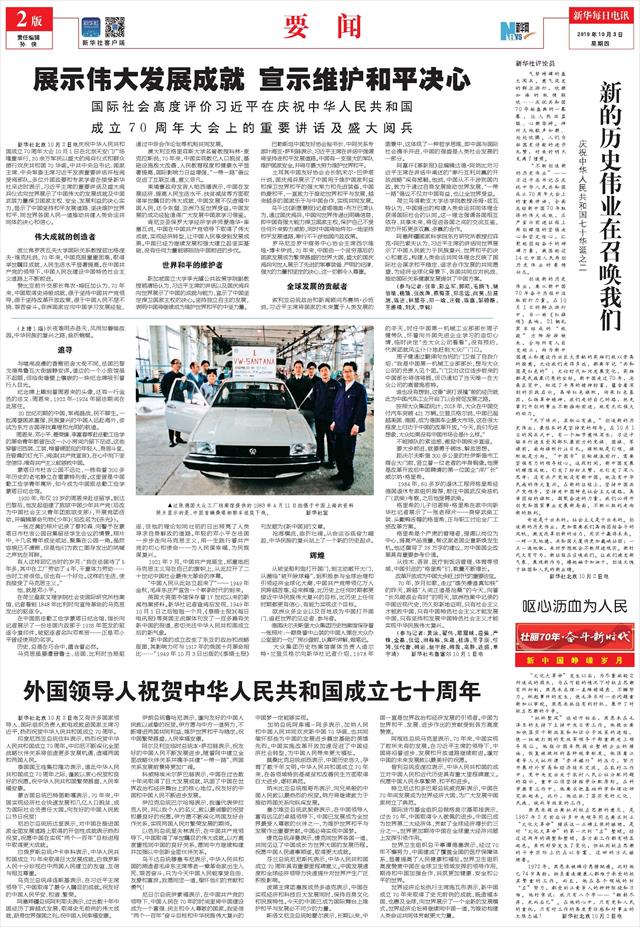 ( 2019-10-03 ) 稿件来源:新华每日电讯 要 闻