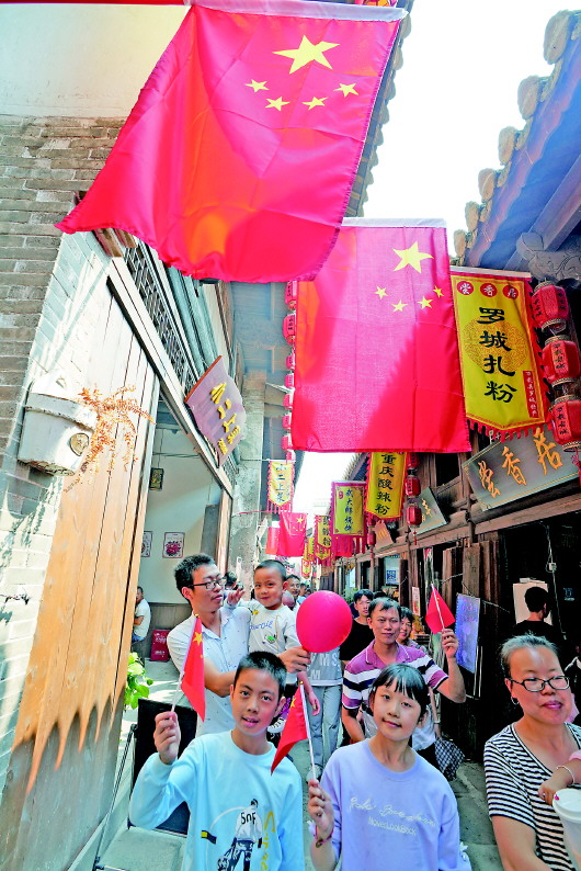 ▲10月3日,游客在万载古城内游玩。国庆假期期间,江西万载县万载古城迎来众多游客参观。