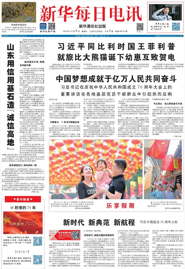 ( 2019-10-04 ) 稿件来源:新华每日电讯 要 闻