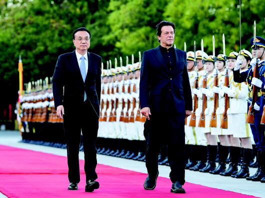 会谈前,李克强在人民大会堂东门外广场为伊姆兰·汗举行欢迎仪式。新华社记者殷博古摄 |