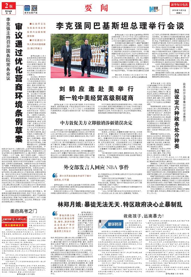 | ( 2019-10-09 ) 稿件来源:新华每日电讯 要 闻 |