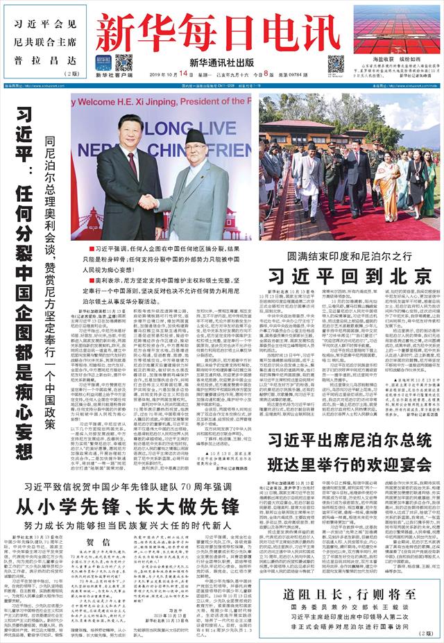 | ( 2019-10-14 ) 稿件来源:新华每日电讯 要 闻 |