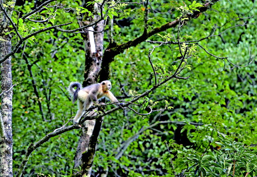 ▲在云南迪庆藏族自治州维西县塔城镇的滇金丝猴国家公园拍摄的滇金丝猴(9月19日摄)。 新华社记者张誉东摄