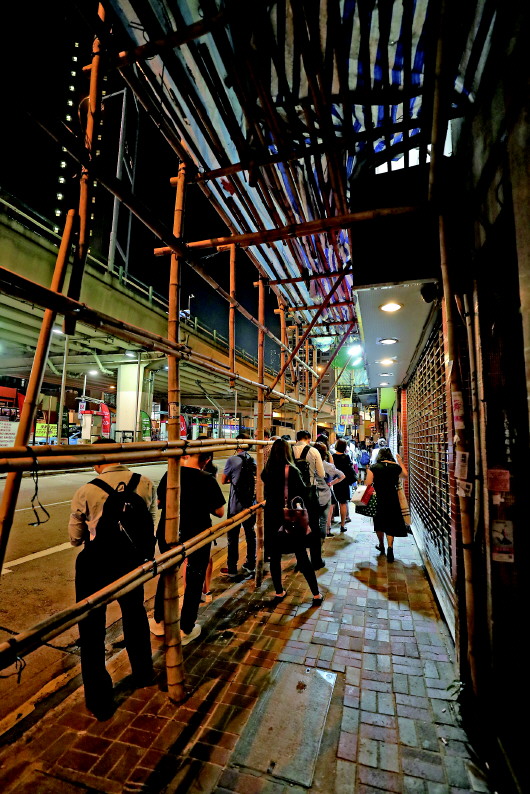 10月13日,受暴力事件影响,港铁提前停运,更多市民选择巴士出行。在巴士站等候的市民排起了长队。 新华社记者卢烨摄