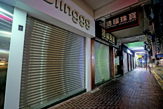 10月13日,受暴力事件影响,香港铜锣湾地区的商铺早早关门。 新华社记者卢烨摄