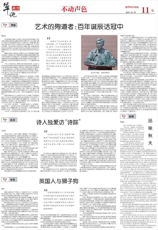 | ( 2019-10-18 ) 稿件来源:新华每日电讯 草地副刊 |