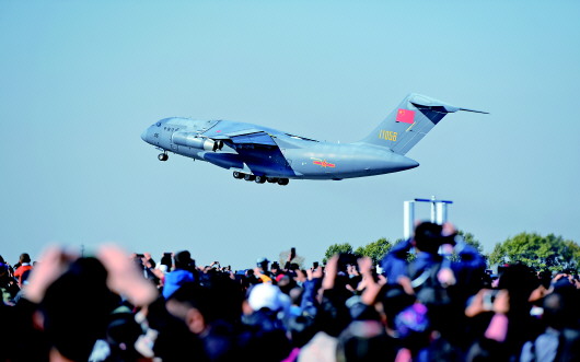 ▲10月17日,大型运输机运-20进行飞行展示。 新华社记者林宏摄