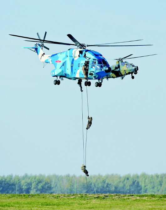 ▲10月17日,空降兵空中突击行动展示。 新华社记者张楠摄