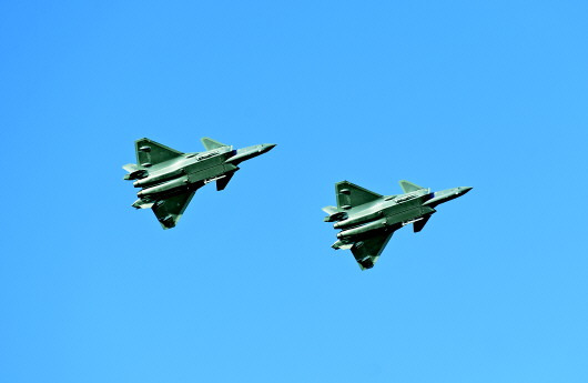 ▲10月17日,歼-20在活动上进行飞行展示。 新华社记者林宏摄