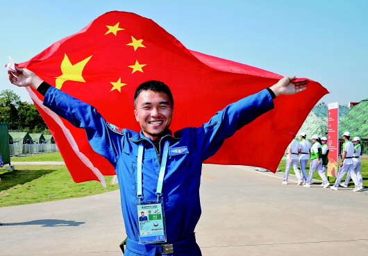 空军五项是军运会最具军事特色的项目之一。在19日进行的飞行比赛中,廖伟华以总分第一的成绩将金牌收入囊中。