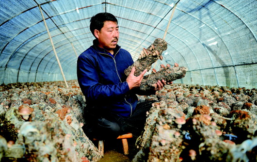 49岁的雷东明,出生在陕西宁陕县广货街镇元潭村的一个贫困家庭,从小患有小儿麻痹症,右眼因故近乎失明,只能靠双手支撑两个板凳行走。2006年,雷东明学习菌菇种植技术开始种植香菇。可是一场暴雨将他第一次种植的香菇冲毁,他又开始了外出打工的生涯。2013年,为照顾年事已高的母亲,他告别漂泊回到家乡,凭技术又种起香菇,获得了不错的收入。种香菇出了名,引来周边村民纷纷向他学习。随着邀请他进行技术指导的人越来越多,雷东明专职干起了香菇种植技术指导。靠着做技术指导,雷东明一年收入有四五万元。2017年年底他们家摘下了“穷帽”。 新华社记者刘潇摄