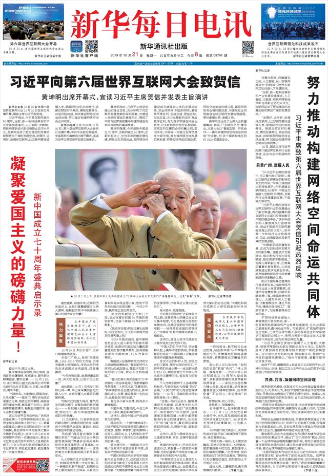 | ( 2019-10-21 ) 稿件来源:新华每日电讯 要 闻 |