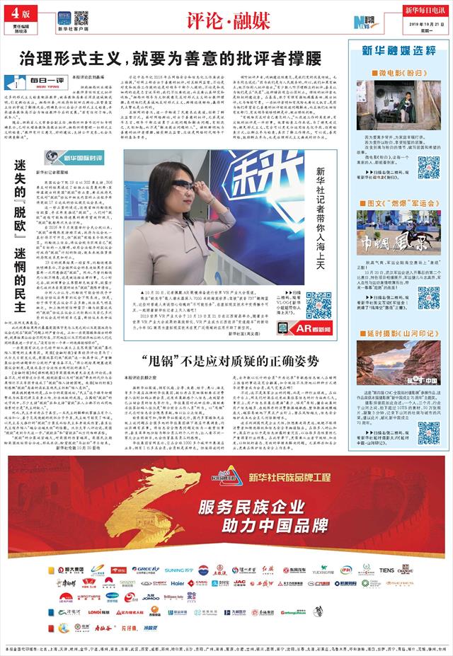| ( 2019-10-21 ) 稿件来源:新华每日电讯 评论·融媒 |