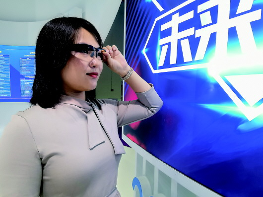 ▲10月20日,记者佩戴AR眼镜准备进行世界VR产业大会报道。