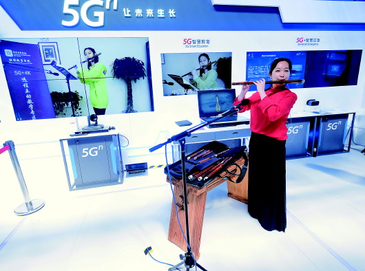 10月19日,在乌镇举行的互联网之光博览会上,工作人员在展示基于5G技术的远程互动音乐教学。 新华社记者徐昱摄 |