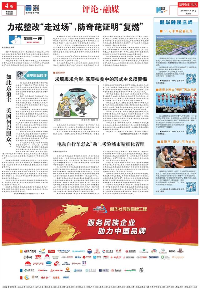 | ( 2019-10-24 ) 稿件来源:新华每日电讯 评论·融媒 |