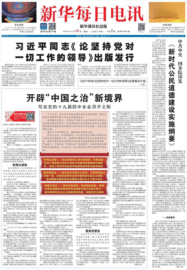 ( 2019-10-28 ) 稿件来源:新华每日电讯 1版 要闻