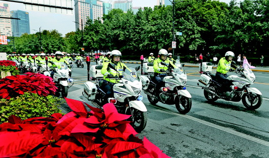 当日,由100多名队员组成的上海市公安局黄浦分局“黄浦公安铁骑队”正式亮相并上岗值勤。据了解,铁骑队以摩托车为主要交通工具,将利用其机动灵活的特点,成为快速反应、加强社会防控水平的一支生力军。 新华社记者凡军摄