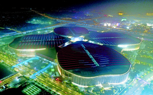 ▲夜幕下的第二届中国国际进口博览会举办场地——国家会展中心(上海)(10月28日摄)。第二届中国国际进口博览会将于11月5日在上海开幕。