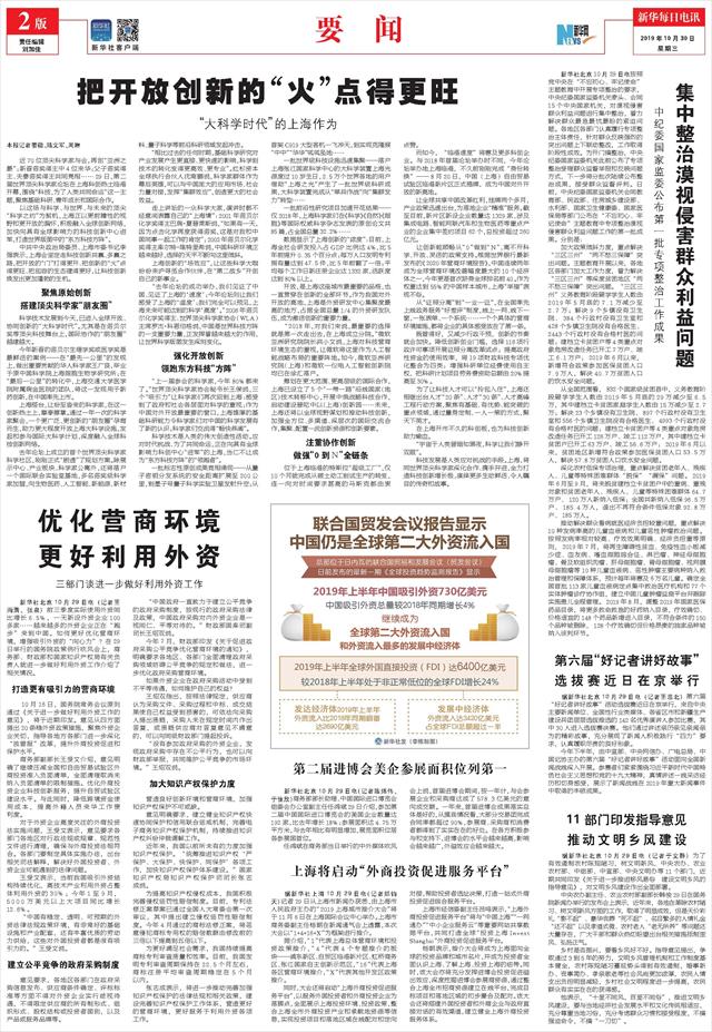 ( 2019-10-30 ) 稿件来源:新华每日电讯 2版 要 闻
