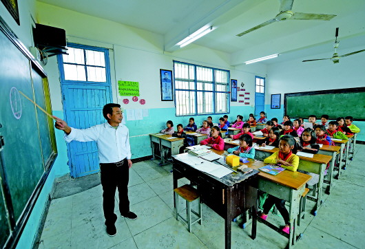 10月28日,黄兴来在给学生上课。 今年61岁的黄兴来原是江西省乐安县万崇镇安里小学的一名乡村教师。2018年7月,年满60岁的黄兴来离开了坚持42年的讲台。2019年1月,黄兴来响应当地政府部门“银龄计划”的召唤,来到乐安县湖坪乡村里小学重新担任教师工作。 为了做好当下的教师工作,黄兴来只身一人来到离家40多公里外的校园,和许多年轻教师一起吃住在学校。从课堂教学到课外活动,从上门家访到为留守儿童准备晚餐……虽然已年过60,但黄兴来依然干得有声有色。 “自从我当老师的那天起,就觉得这辈子都离不开这份工作。有我离不开的孩子,更有离不开的讲台。”黄兴来说。 新华社记者胡晨欢摄 |