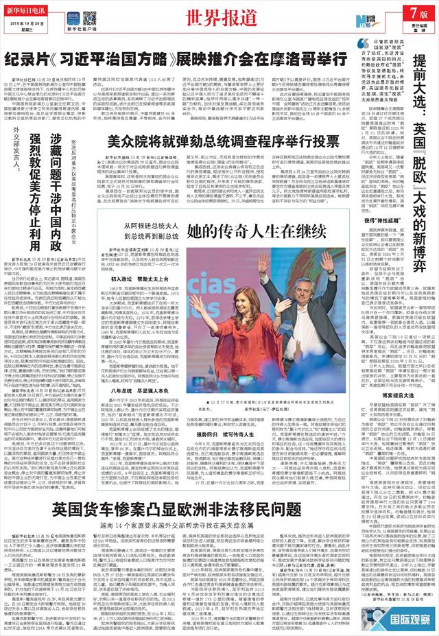 | ( 2019-10-30 ) 稿件来源:新华每日电讯 7版 世界报道 |