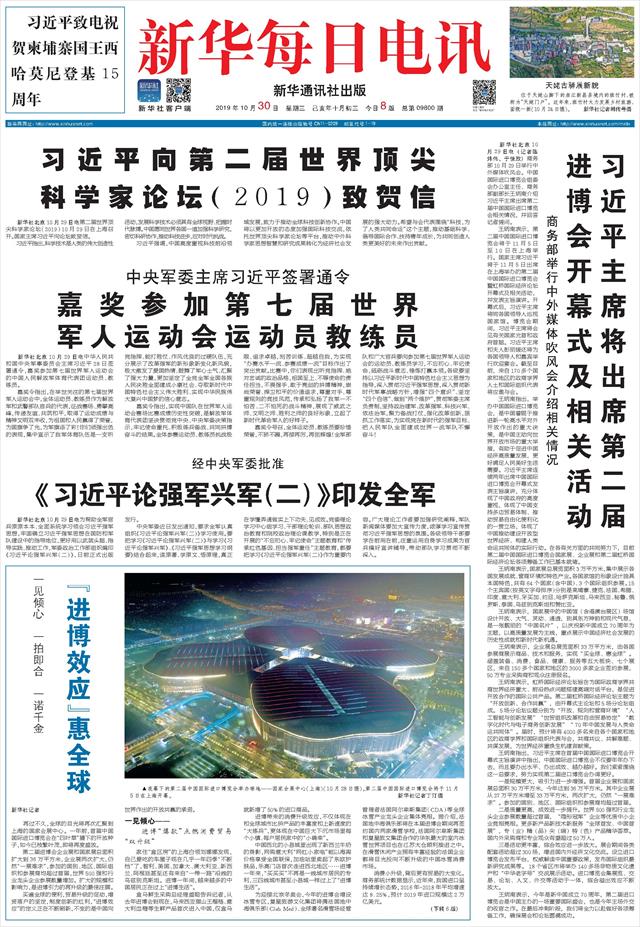 ( 2019-10-30 ) 稿件来源:新华每日电讯 1版 要 闻