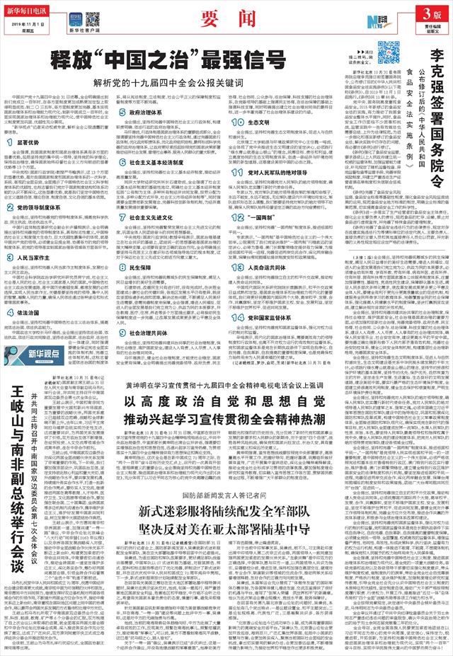 | ( 2019-11-01 ) 稿件来源:新华每日电讯 3版 要 闻 |