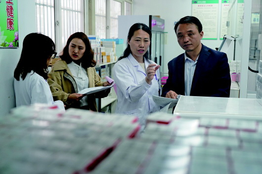 ▲10月31日,在海安市人民医院,巡察组工作人员在药房进行巡察。日前,江苏省海安市启动第十轮巡察工作,把医疗卫生系统列为此轮巡察重点。巡察组工作人员广泛听取群众意见,紧抓关键环节,对医疗卫生行业开展全覆盖、拉网式监督检查。 新华社记者季春鹏摄