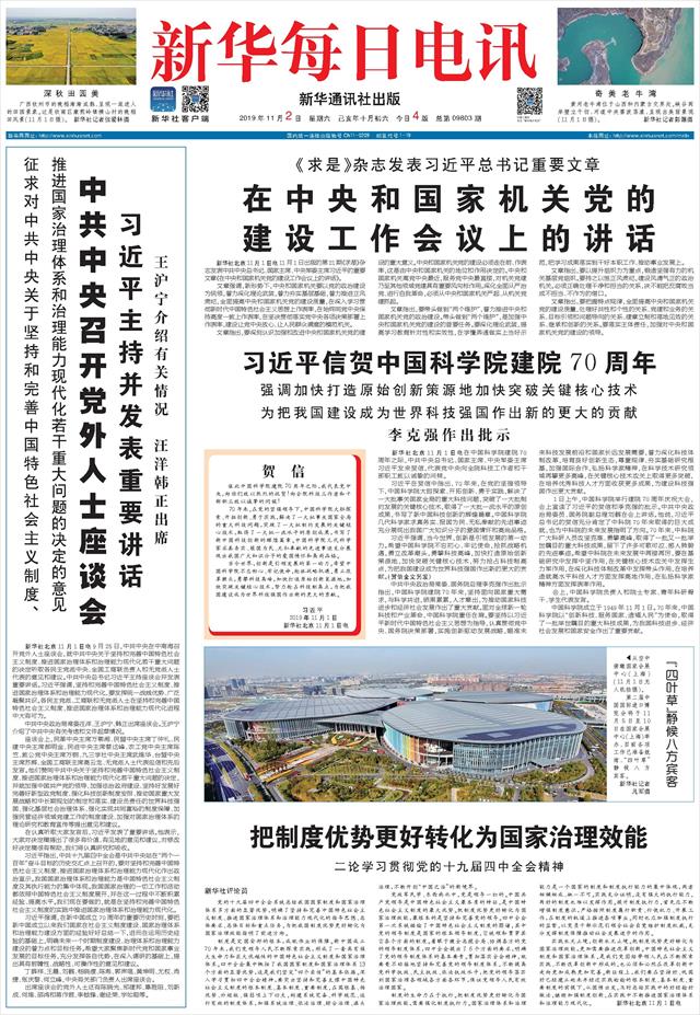 | ( 2019-11-02 ) 稿件来源:新华每日电讯 要 闻 |