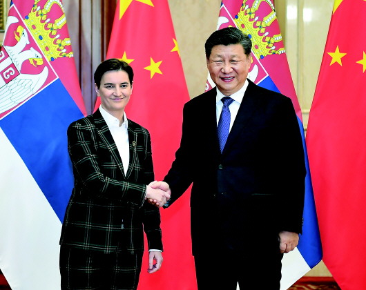 ▲11月4日,国家主席习近平在上海会见塞尔维亚总理布尔纳比奇。新华社记者谢环驰摄