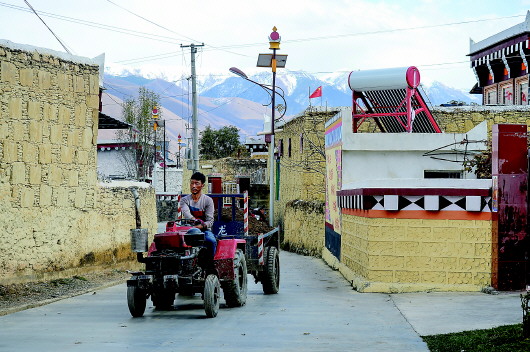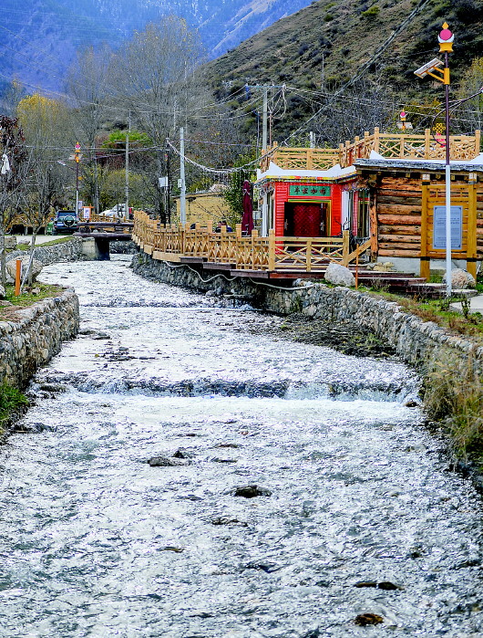 “鲜山鲜水鲜生活,增收增彩增幸福。”317国道旁,一座座藏式新居点缀在雪山之下,一块广告牌上的话注解着鲜水河谷的丰收喜悦。(记者惠小勇、康锦谦、张海磊)新华社成都电