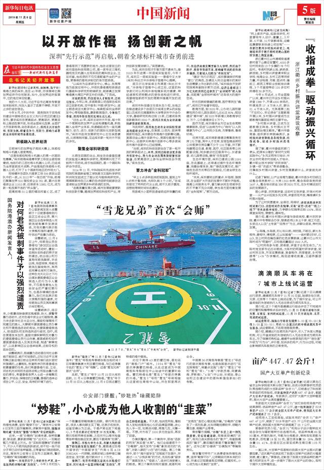 | ( 2019-11-08 ) 稿件来源:新华每日电讯 中国新闻 |