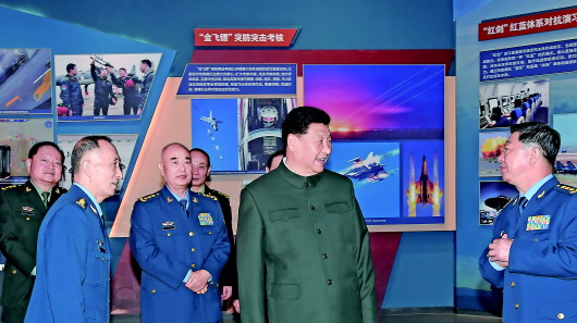 习近平强调,人民空军站在了新的历史起点上。要深入贯彻新时代党的强军思想,深入贯彻新时代军事战略方针,牢记初心使命,发扬光荣传统,勇于创新超越,努力把人民空军全面建成世界一流空军,不断创造新的更大的业绩!